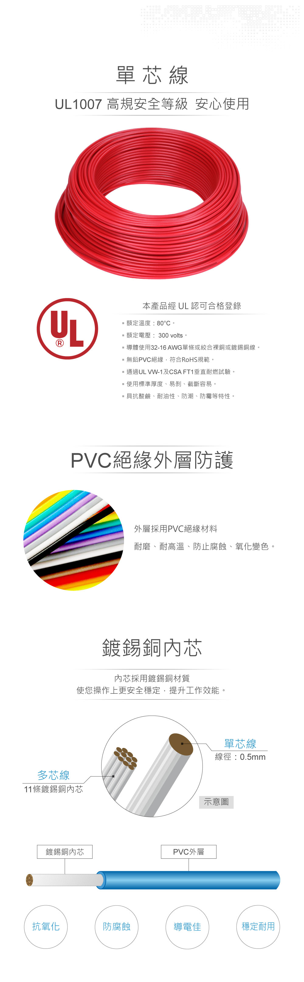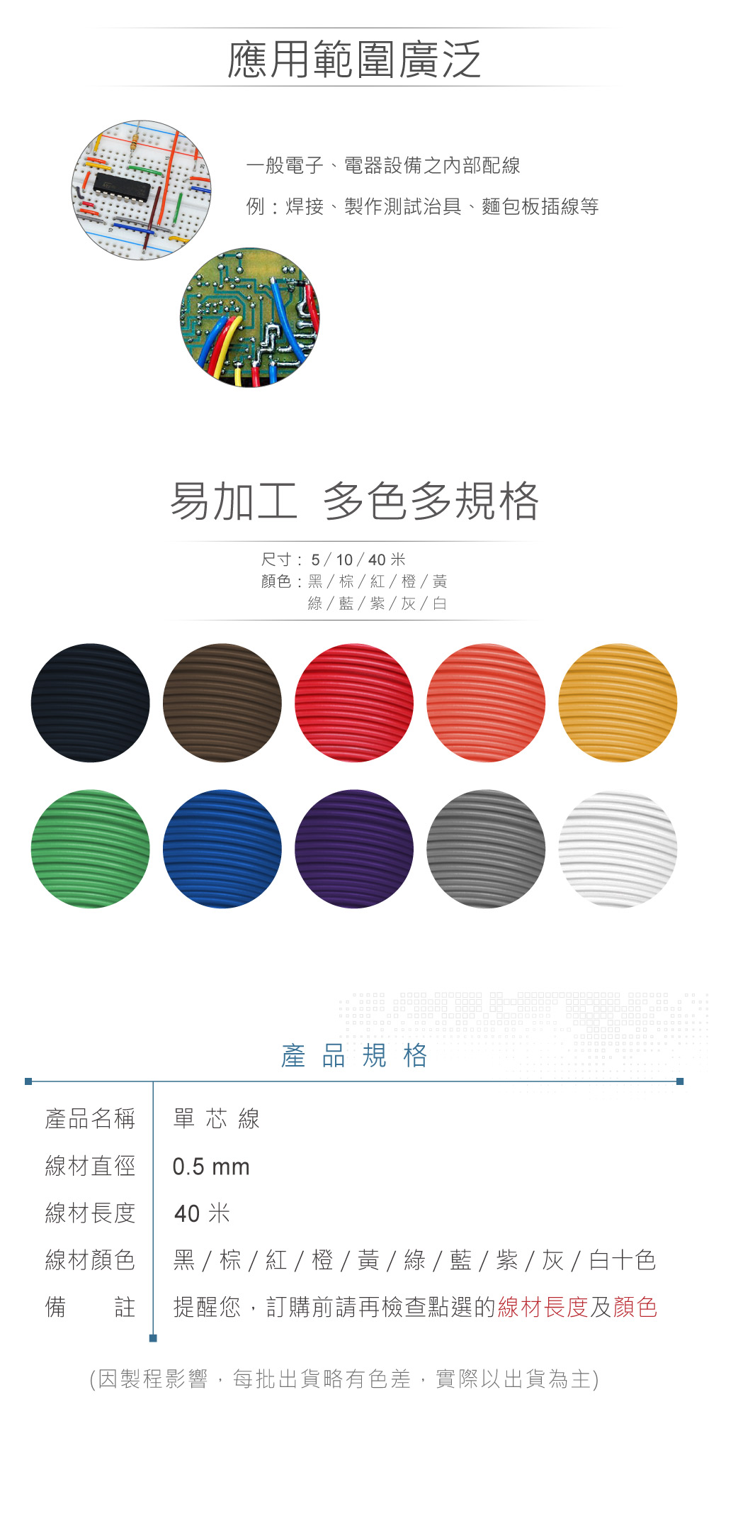 單股單芯線 AWG24 0.5MM 40米 / 45Y 耐溫 80℃ / 麵包板插線