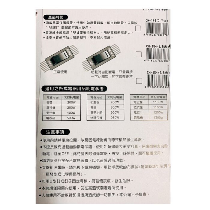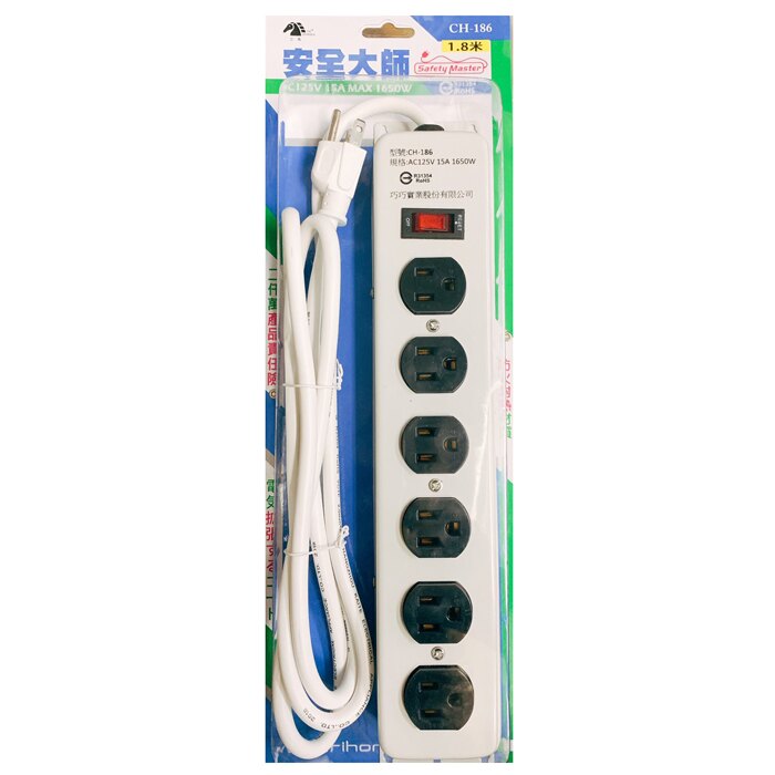 Imax 鐵殼電腦延長線 1開 6插 3孔 AC125V 15A 1650W CH-186