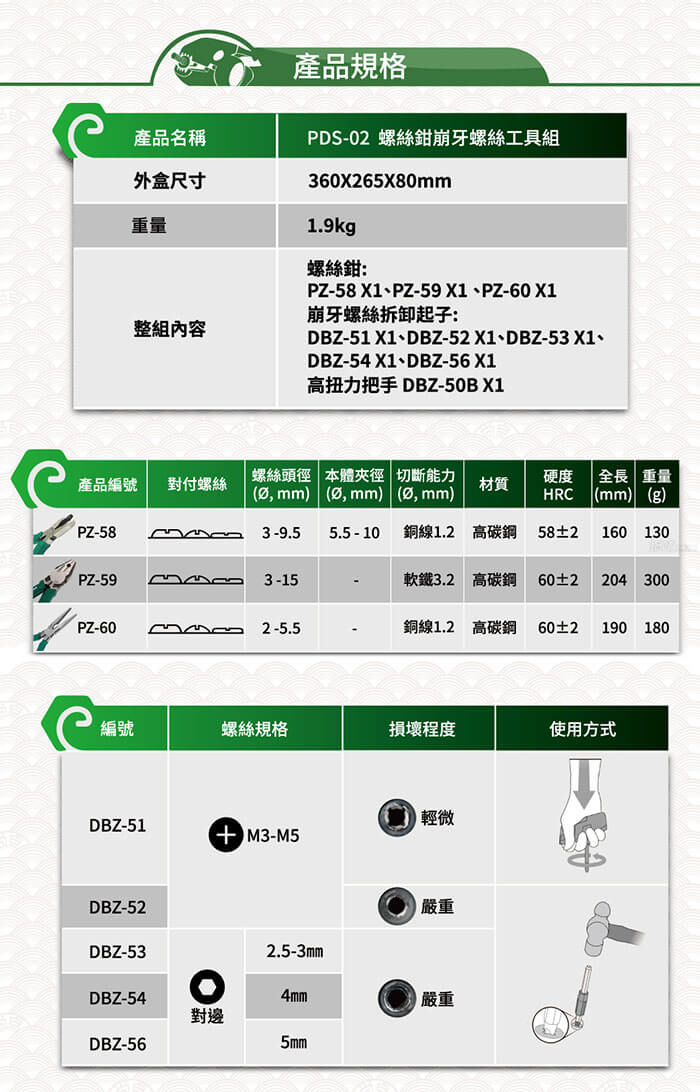 螺絲鉗崩牙螺絲工具組 PDS-02 Engineer