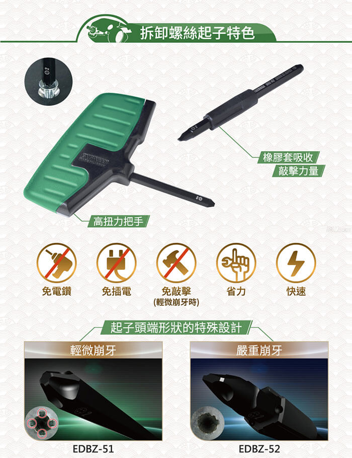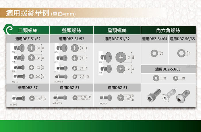 DBZ-51 / DBZ-52 / DBZ-53 / DBZ-54 / DBZ-56:專門拔除皿頭螺絲的替換起子頭系列