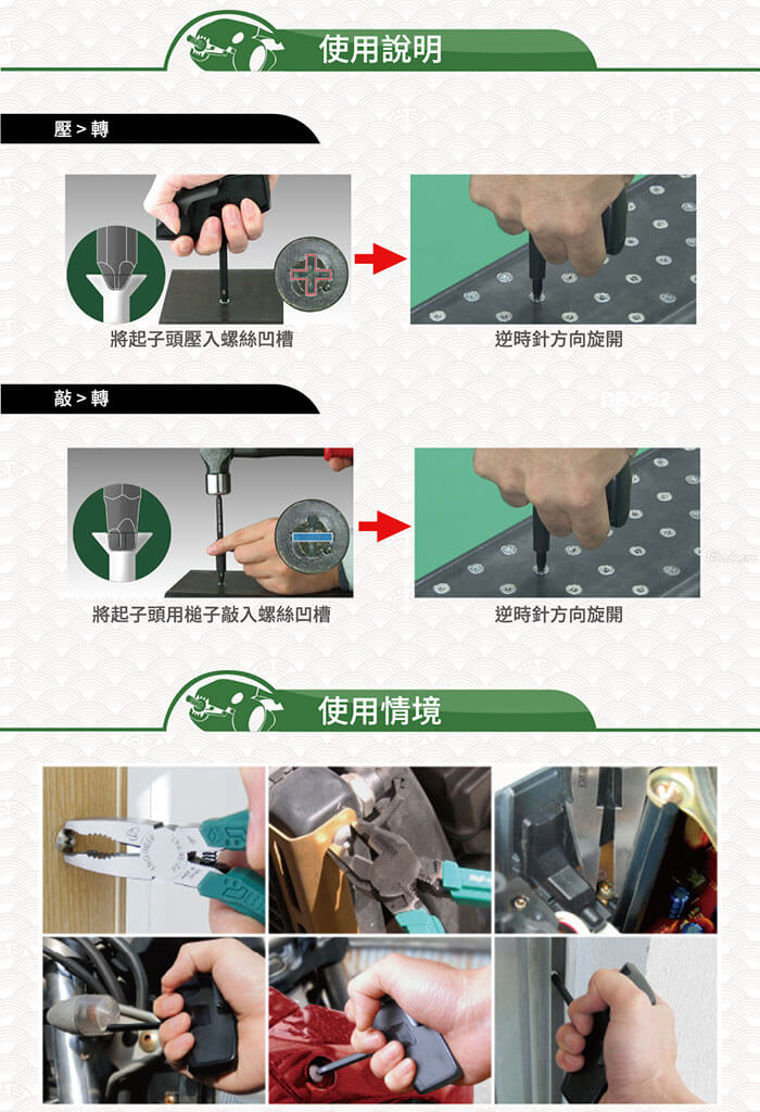 ★ 各種汽機車、船舶、腳踏車、電器、工廠機器、農機、運動器材...等的螺絲拔除問題,都可使用日本工程師暴龍鉗PZ+DBZ系列解決。