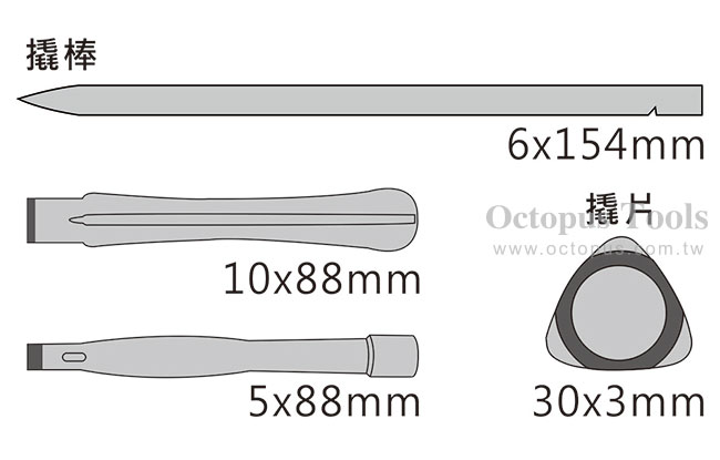 撬棒尺寸:6x154mm / 10x88mm / 5x88mm