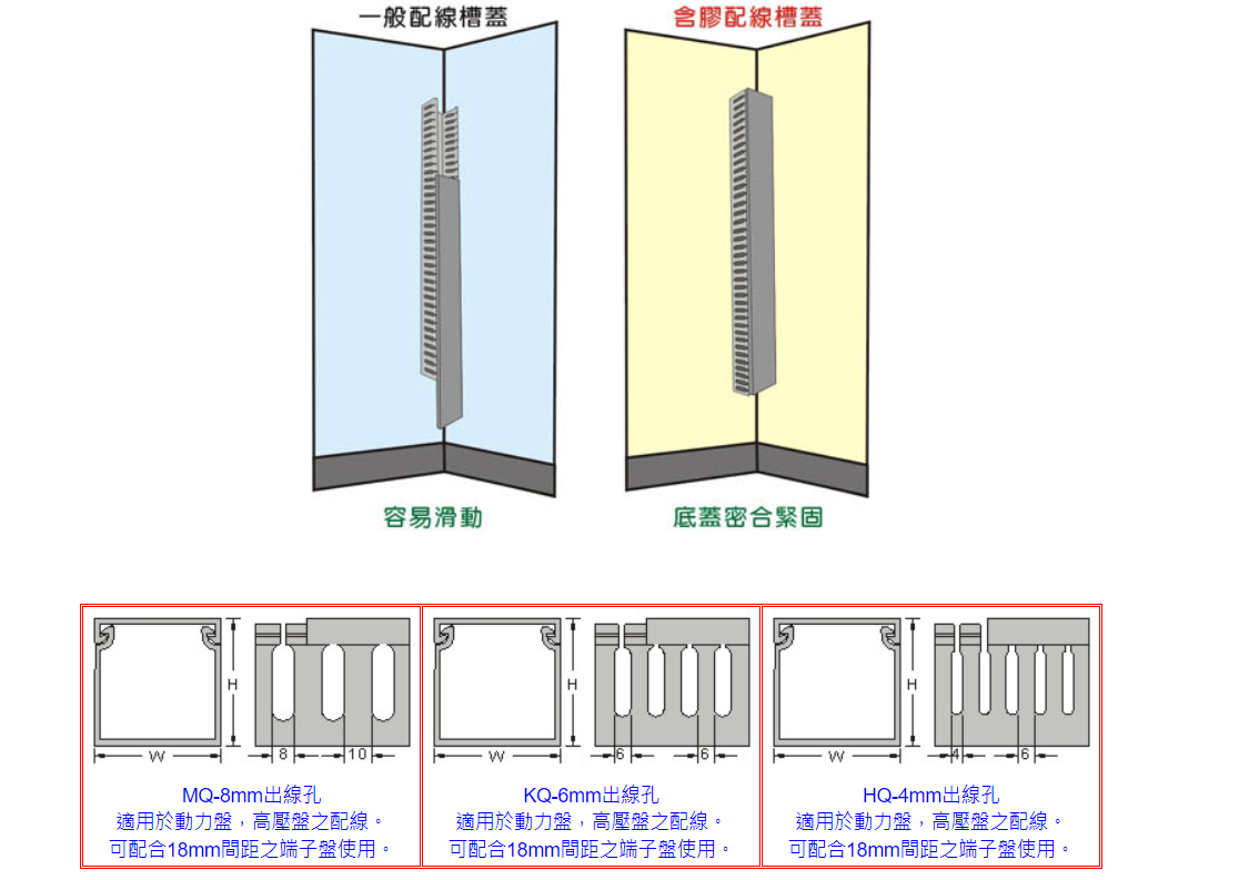 - 0101 含膠型防滑配線槽 MQ/KQ/HQ 系列