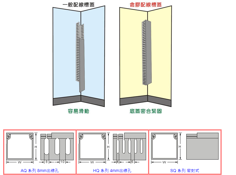 - 0101 含膠型防滑配線槽 AQ/HQ/SQ 系列