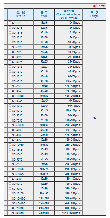 | 構造: | 由槽底及槽蓋兩部份組成,以組合後外部之寬、高為規格標準,UL測試溫度50℃。 |