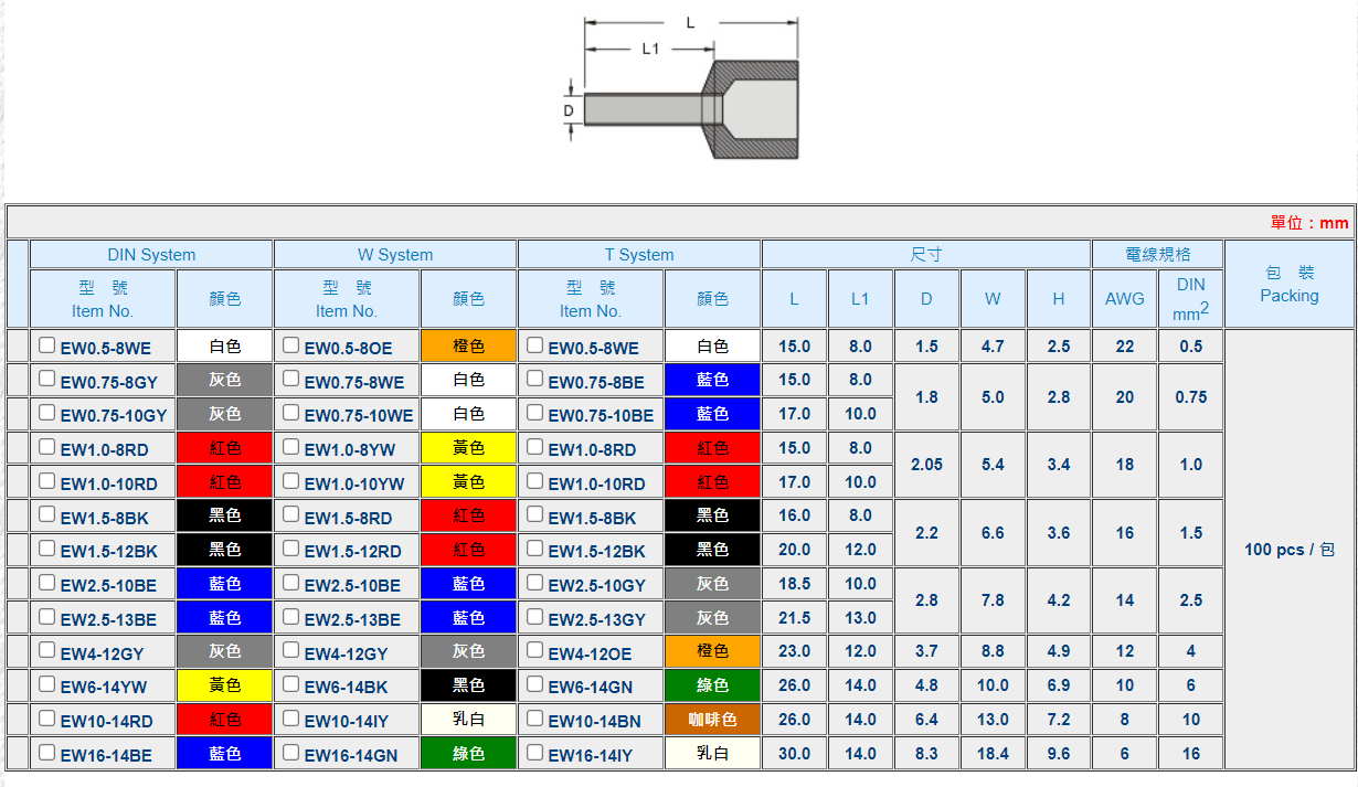 1506 KSS 雙線套歐式端子 Cord End Terminal T System