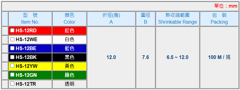 0920 KSS 熱收縮套管(扁型) HS-12