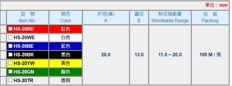 | 特性: | 收縮溫度100℃以上,內徑收縮率45~50%;縱向收縮率8~15%,可連續使用溫度-15 to 105℃,厚度0.08mm。 |