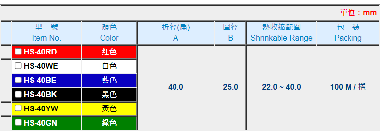 0920 KSS 熱收縮套管(扁型) HS-40