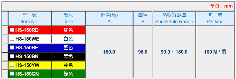 | 特性: | 收縮溫度100℃以上,內徑收縮率45~50%;縱向收縮率8~15%,可連續使用溫度-15 to 105℃,厚度0.08mm。 |