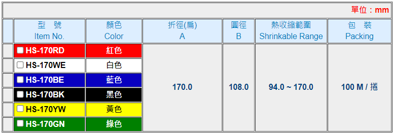 | 特性: | 收縮溫度100℃以上,內徑收縮率45~50%;縱向收縮率8~15%,可連續使用溫度-15 to 105℃,厚度0.08mm。 |