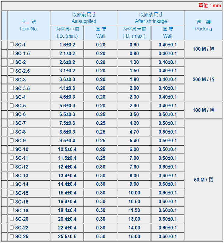 0927 KSS 熱收縮套管(SC) Heat-Shrinkable Tubings (SC)