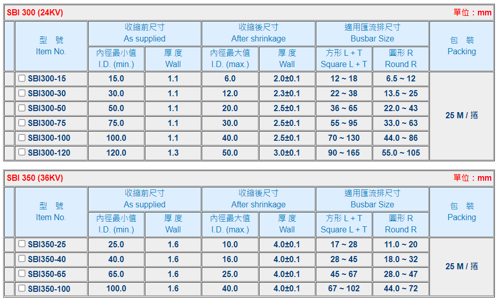 0927 KSS 高電壓匯流排熱收縮套管 Sei Irrax Sleeve SBI 300/350