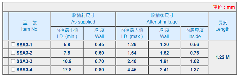 - 0927 KSS 含膠型熱收縮套管(SSA3)