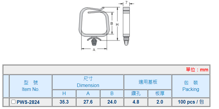 | 材質: | UL合格之NYLON 66(本色),防火等級 94V-2。 |