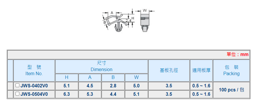 | 材質: | UL合格之NYLON 66(白色),防火等級 94V-0。 |