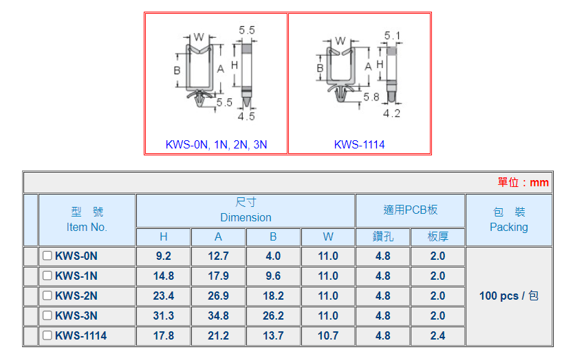 | 材質: | UL合格之 NYLON 66(本色),防火等級 94V-2。 |