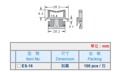 | 材質: | UL合格之 NYLON 66(本色),防火等級 94V-2。 |
