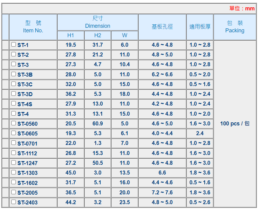 | 材質: | UL合格之 NYLON 66(本色),防火等級 94V-2。 |