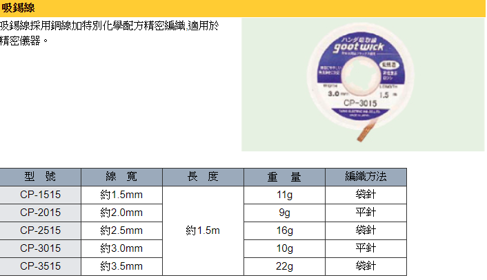 吸錫線採用銅線加特別化學配方精密編織,適用於精密儀器。