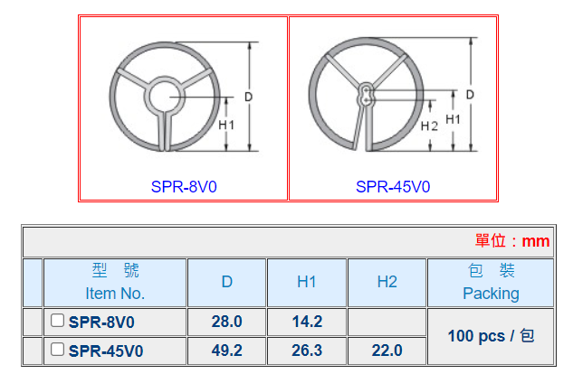 | 材質: | UL合格之 NYLON 66(白色),防火等級 94V-0。 |