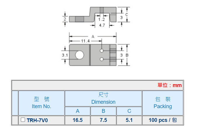 | 材質: | UL合格之 NYLON 66(白色),防火等級 94V-0。 |