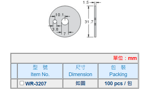 | 材質: | UL合格之 NYLON 66(本色),防火等級 94V-2。 |