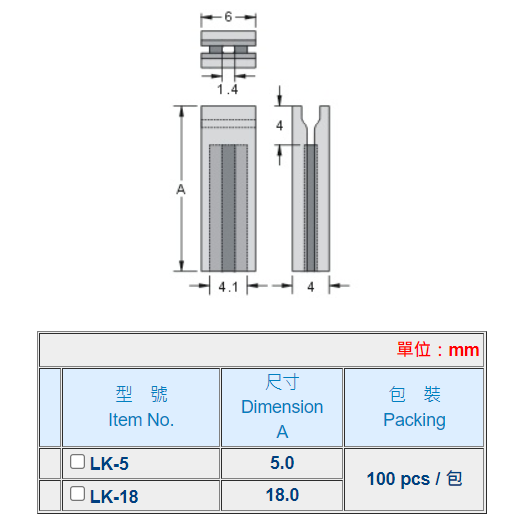 | 材質: | UL合格之 NYLON 66(本色),防火等級 94V-2。 |