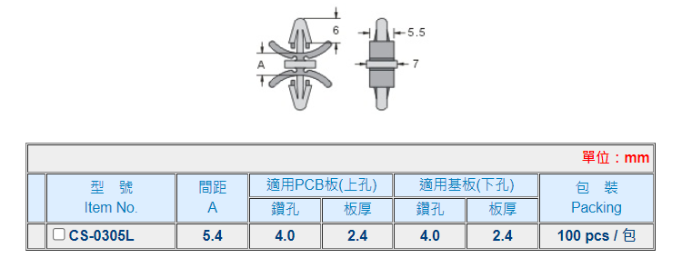 | 材質: | UL合格之NYLON 66(本色),防火等級 94V-2。 |
