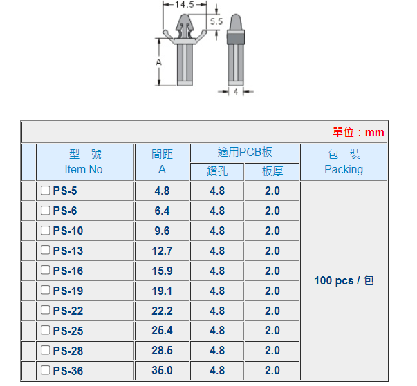 | 用途: | 支撐 PC板用,增加 PC板穩定 。 |