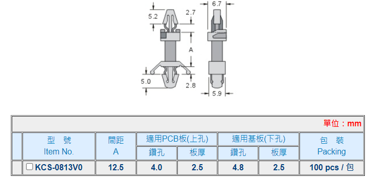 | 用法: | 免工具、用手裝卸容易。使用時先將基板鑽孔後將隔離柱固定,再將 PC板套入即可。 |