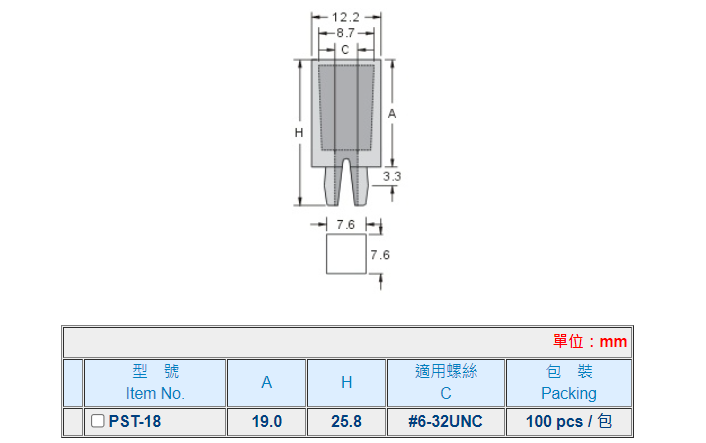 | 材質: | UL合格之NYLON 66(本色),防火等級 94V-2。 |
