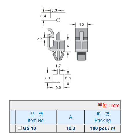 | 材質: | UL合格之NYLON 66(本色),防火等級 94V-2。 |