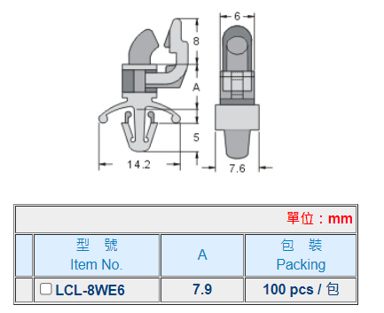 | 材質: | UL合格之NYLON 66(白色),防火等級 94V-2。 |