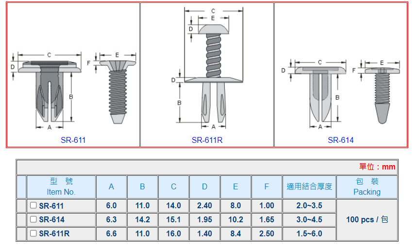 | 用法: | 先將基板及被固定板鑽孔,再將本產品塞入旋轉緊,即可使兩板相結合。 |