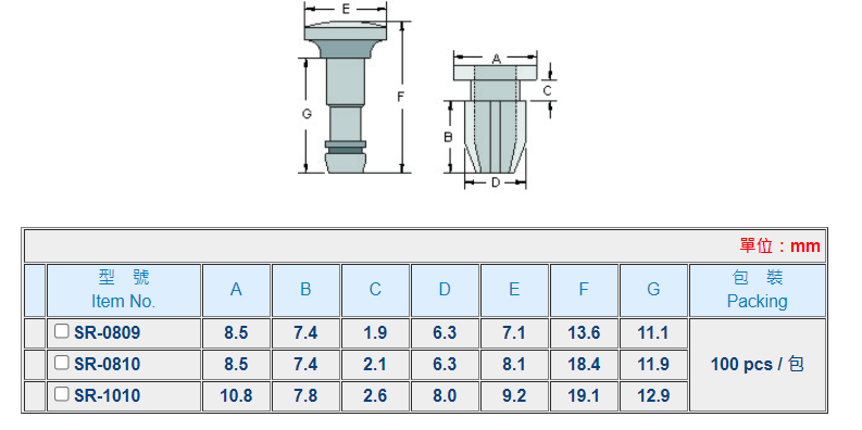 1129 KSS 尼龍鉚釘 Snap Rivet