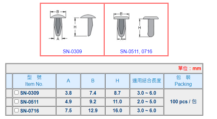 | 材質: | UL合格之 NYLON66(本色),防火等級 94V-2。 |