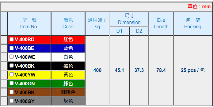 | 特點: | 電機電子用高級絕緣套管、色澤清晰、光亮、彈性佳、絕緣性良好。 |
