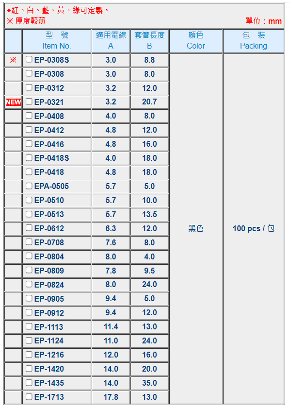 | 用途: | 適用於各種電線、電纜末端防塵、防濕保護套。 |
