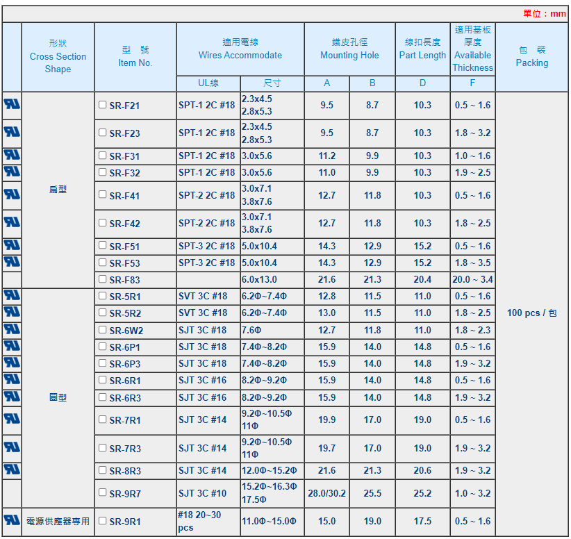 | 用途: | 各種家電用品,儀器、電腦之電源線固定及保護用,避免電源線滑動而被機板割傷。 |