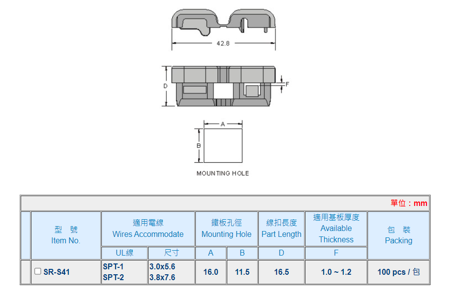 | 材質: | UL合格之NYLON 66(黑色) 防火等級 94V-2,不易老化。 |