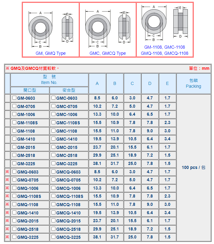 | 用途: | 開口型 - 使粗糙的鐵孔變成圓滑的出線孔。各種電線電纜之保護及絕緣。 |