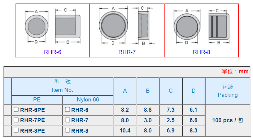 | 材質: | PE(本色)或 NYLON 66(本色)。 |