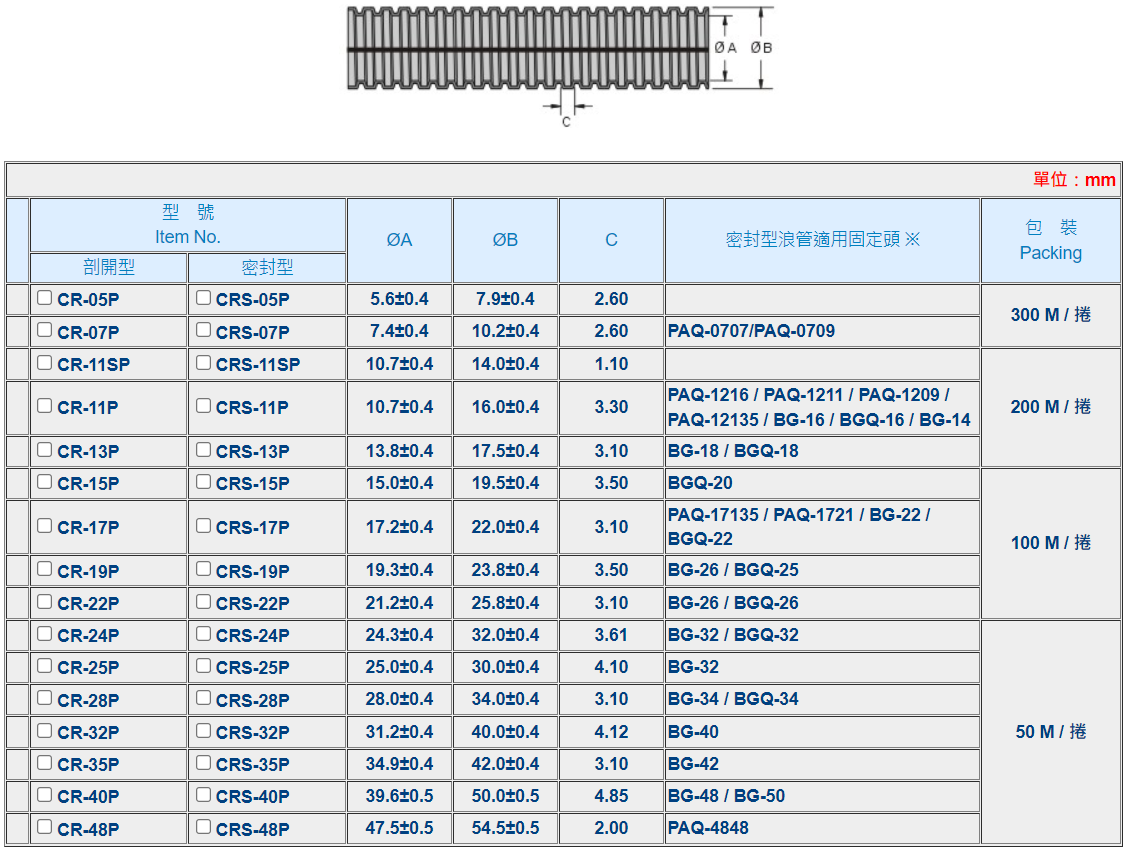 0620 KSS 浪管(PP) Flexible Conduit (PP) 剖開型
