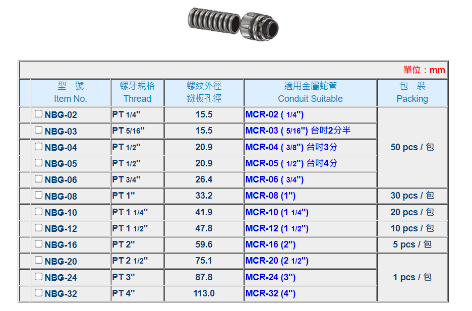 0625 KSS 金屬軟管固定頭(盒接頭) Metal Flexible conduit Adaptor (Control Box Adaptor)