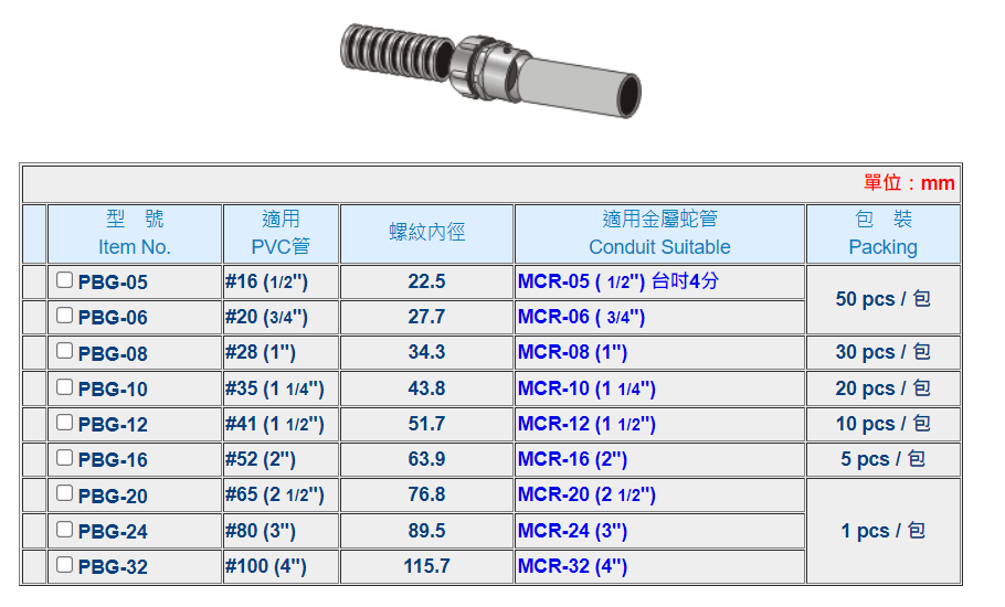 0625 KSS 金屬軟管固定頭(管接頭-PVC管用)