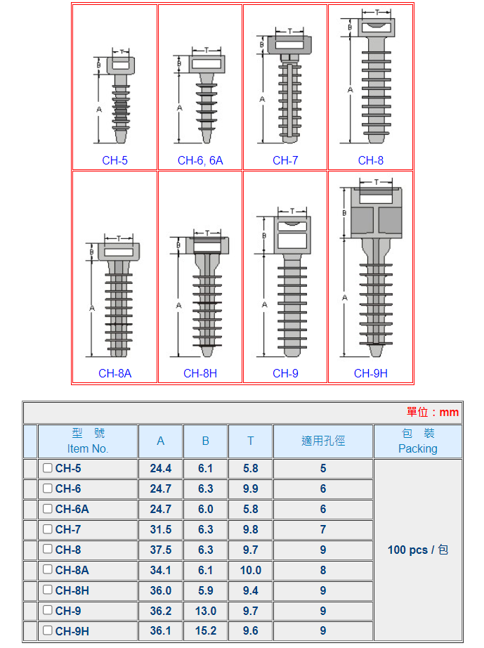 | 材質: | UL合格之NYLON 66(黑色),防火等級 94V-2。 |