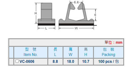 | 材質: | UL合格之NYLON66(本色),防火等級94V-2,底座背膠。 |