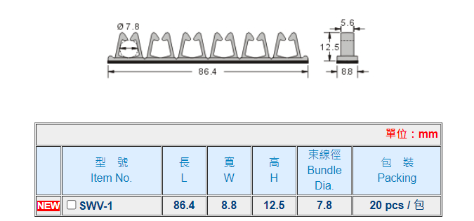 | 材質: | UL合格之NYLON 66(黑色),防火等級 94V-2,底座背膠。 |