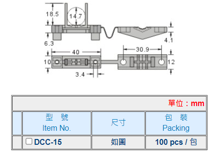 | 材質: | UL合格之NYLON 66(本色),防火等級 94V-2。 |